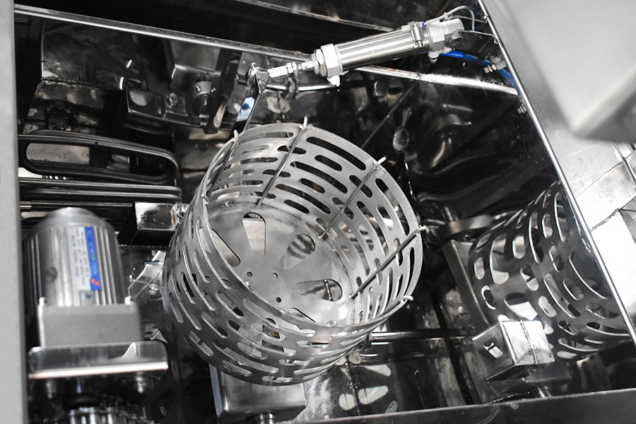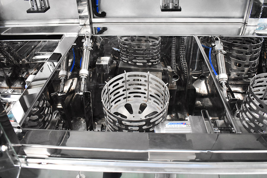 該設(shè)備有自動上下料及轉(zhuǎn)角系統(tǒng)、超聲波清洗系統(tǒng),自動拋動、自動溢流和油污分離裝置,噴淋系統(tǒng)、自動高壓切水系統(tǒng)、自動烘干系統(tǒng)。機械手自動輸送系統(tǒng)采用高精度直線導軌配合高精度位置檢測傳感器,機械手可以準確的實現(xiàn)工件的抓取和放置。自動進排液和自動加溫系統(tǒng)完全實現(xiàn)了無人干預,自動運行,很大程度上降低了工人的勞動強度。先進的霧氣處理系統(tǒng)可以將清洗時產(chǎn)生的霧氣冷凝回流,空氣經(jīng)過濾和活性炭吸附后排出。